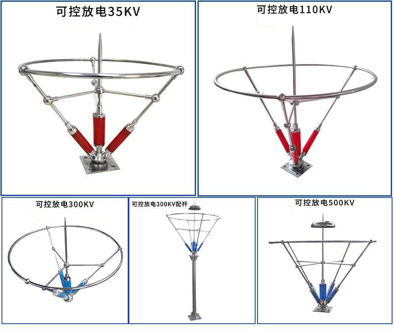 可控放电避雷针由针头、接地引下线、接地装置构成一套保护系统。它的针头不再是单针,而由主针、动态环、贮能装置组成。